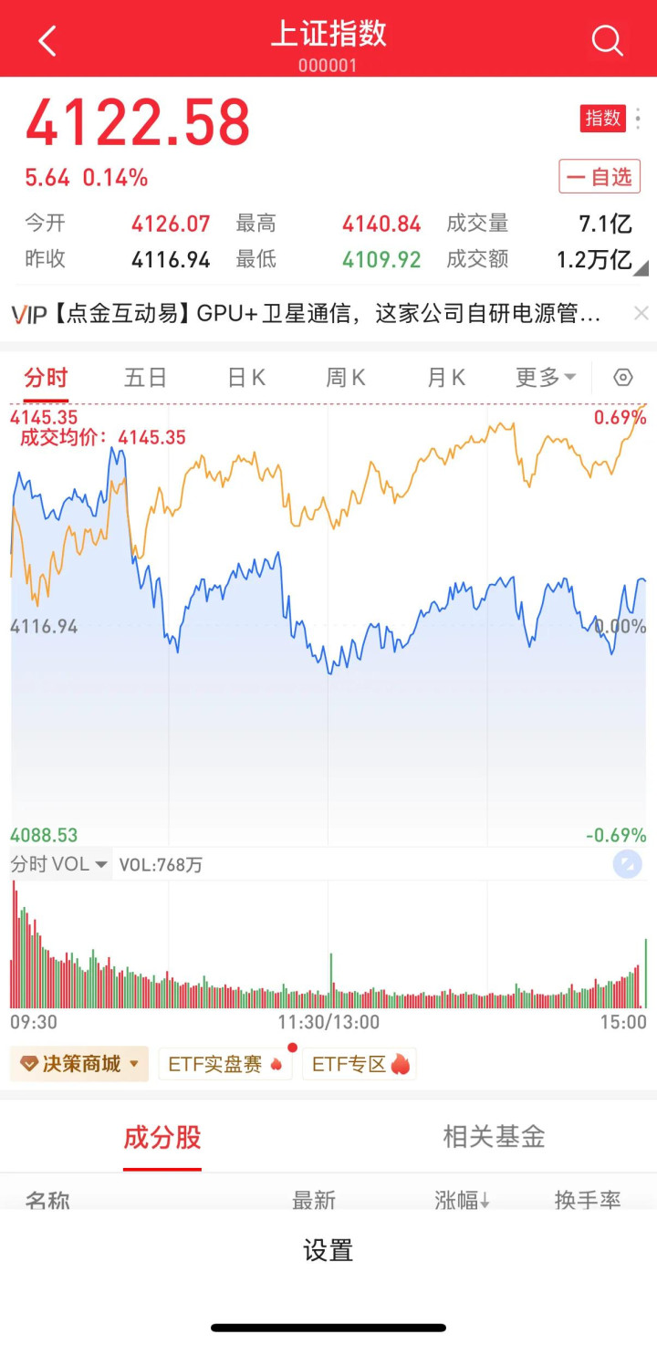 · 上證指數:收報4122.58點,上漲0.14%。