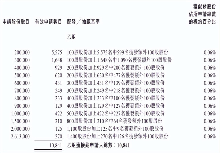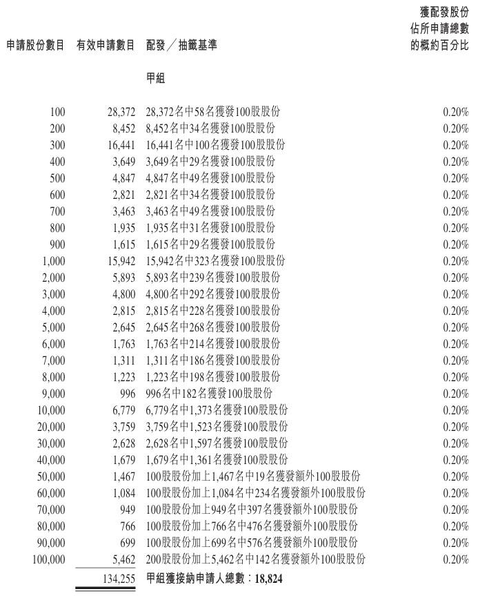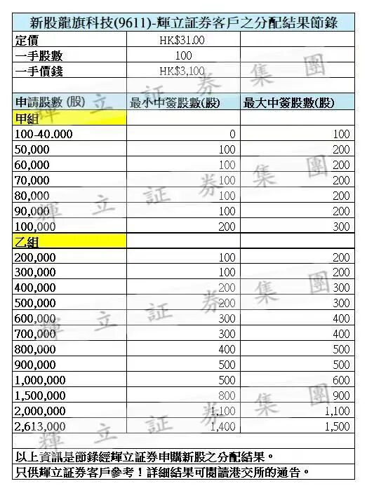 龍旗科技(09611.HK)乙組官方披露的中簽名單: