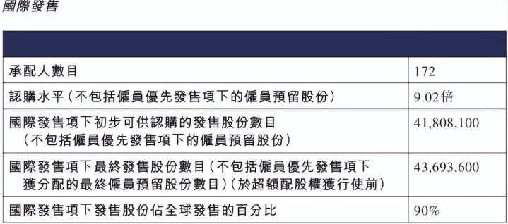 龍旗科技(09611.HK)國(guó)際配售總共172人,認(rèn)購(gòu)額9.02倍。