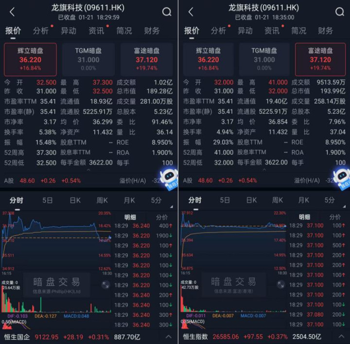 再看看龍旗科技(09611.HK)暗盤(pán)情況