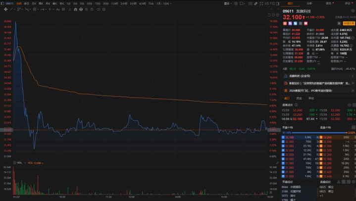 盤(pán)中表現(xiàn):開(kāi)盤(pán)后快速?zèng)_高,盤(pán)中最高價(jià)達(dá)36.86港元,隨后逐步回落。
