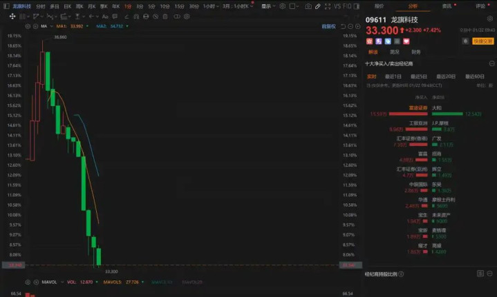 龍旗科技(09611.HK)買(mǎi)盤(pán)席位有0945、0085、9633、9583等,賣(mài)盤(pán)第一席位是9614。