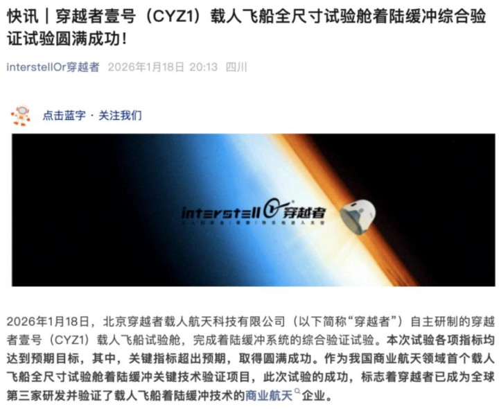穿越者公司官方公告:《“穿越者壹號”商業(yè)載人飛船計(jì)劃2028年首飛》,2026年1月22日;
